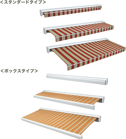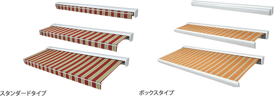 ワンランク上を目指した「スタンダードタイプ」と収納時の建物との調和に配慮した「ボックスタイプ」。