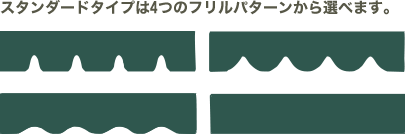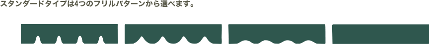4種類の中から、フリル(前垂れ生地)のアレンジを楽しめます。ご希望に合わせてお選びください。