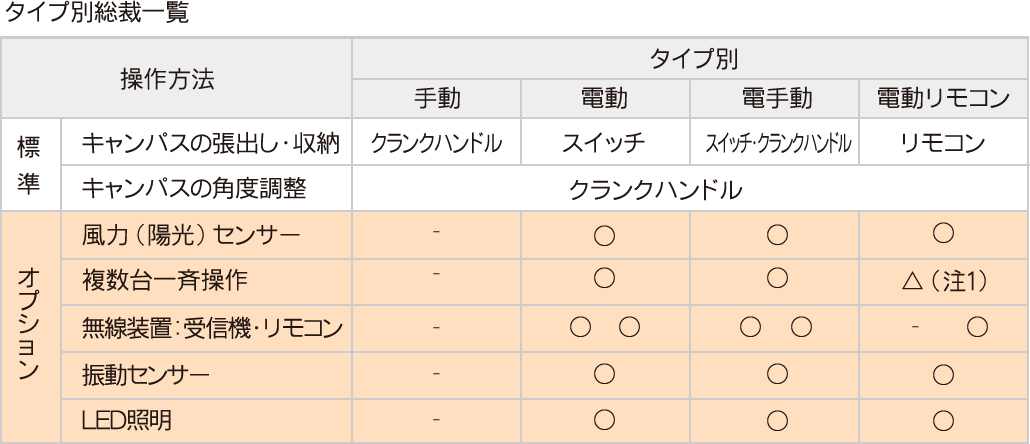 ※電動リモコンタイプは、風力・陽光センサーのみとなります。