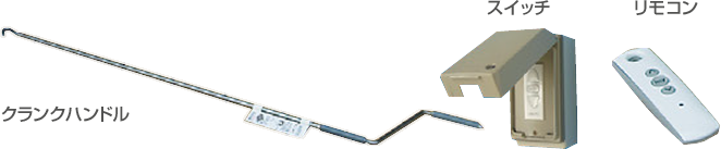 クランクハンドルで開閉操作を行う、シンプルな手動タイプ。