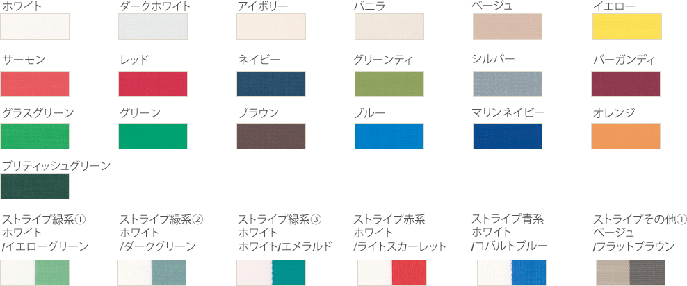 ※製造の特性上、色名が同じであってもストライプの色と単色の色とは同色ではありませんのでご注意ください。