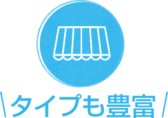 標準のタイプだけでなく雨だれにも強い樋付タイプや西日にも強いローリングシェードタイプまで用途に合わせてお選びいただけます。