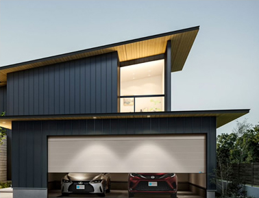 「フラムヴェスタ」は例示仕様の防火設備で2台車庫に対応しており、フラットなデザインやスピーディな開閉も持ち合わせ、法的な要件を満たしながら意匠や機能はあなたの満足度をさらに高め、快適で心地よいガレージライフをお届けします。