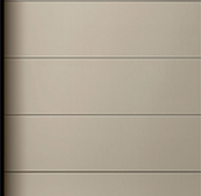 フラットなデザインで車2台分の開口に対応可能な例示仕様のガレージドア。