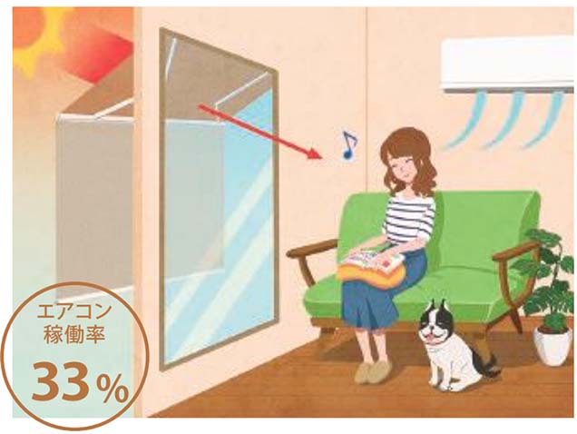 オーニングがついた部屋では、建物の外側から日射しを遮ることができ、33%のエアコン使用度になります。
